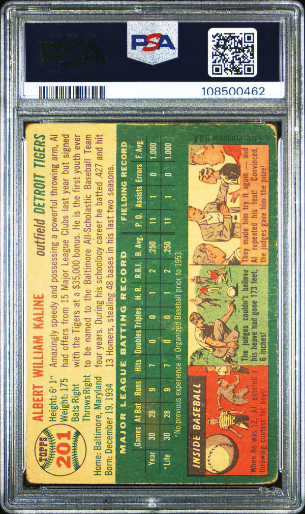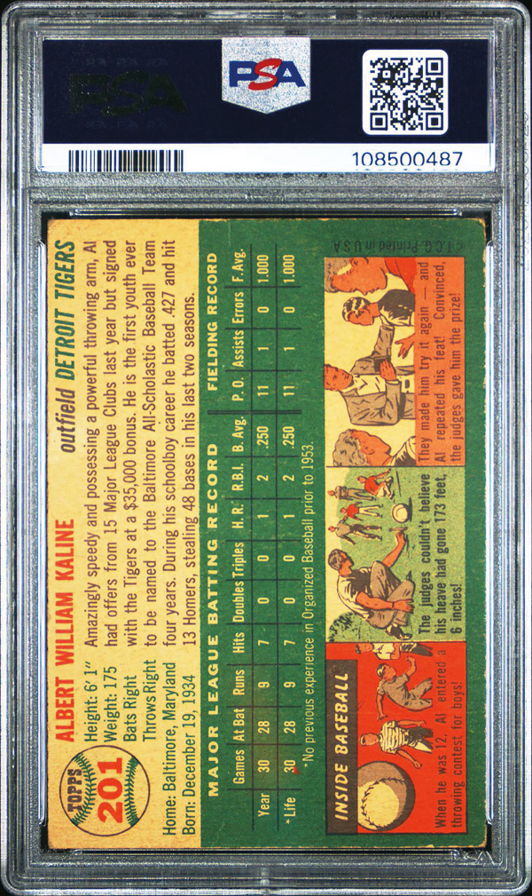 1954 Topps #201 Al Kaline Rookie Card PSA 1.5 FR. (Image) (Image2)