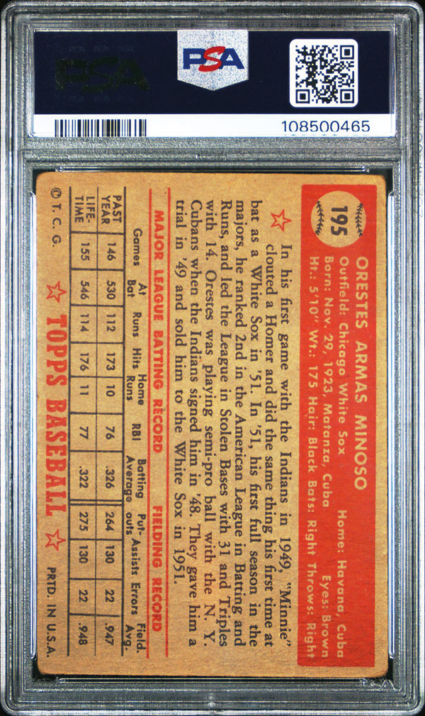 1952 Topps #195 Orestes "Minnie" Minoso Rookie Card PSA 1.5 FR. (Image) (Image2)