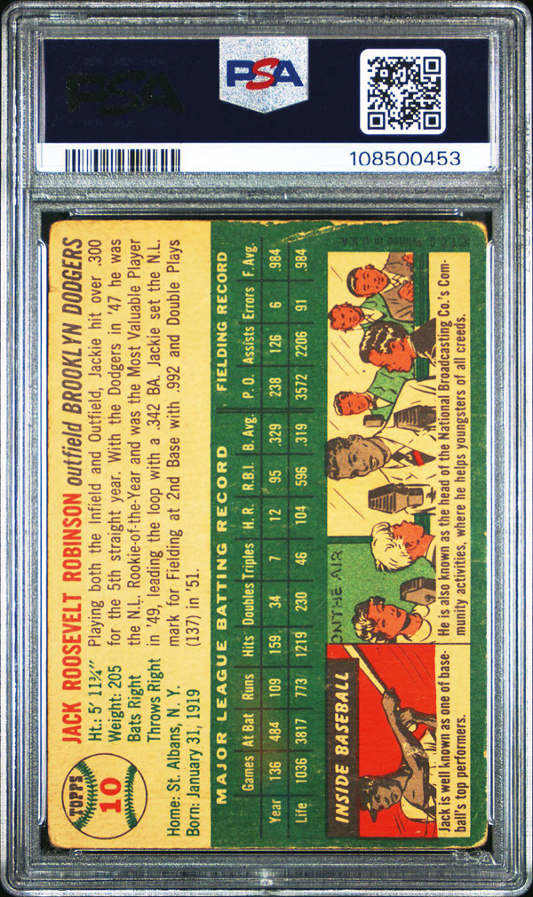1954 Topps #10 Jackie Robinson PSA 1.5 FR. (Image) (Image2)