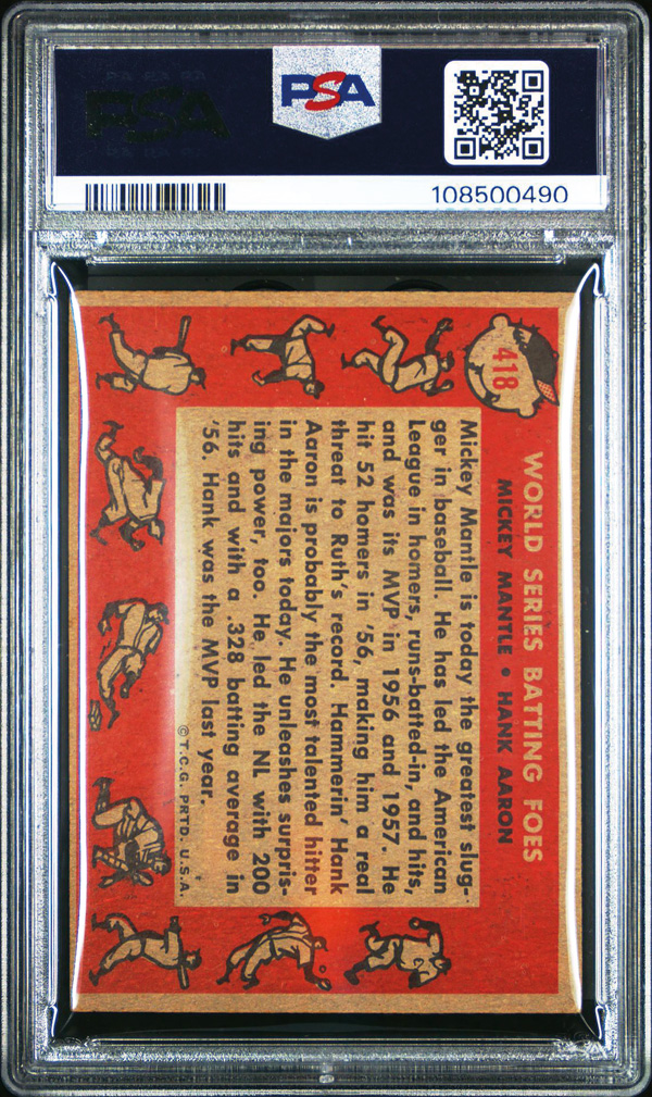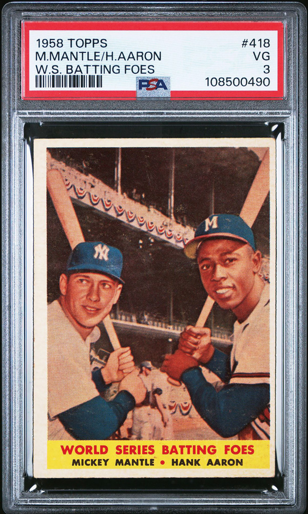 1958 Topps #418 Mickey Mantle Hank Aaron World Series Batting Foes PSA 3 VG, Very Good 3. (Image) (Image2)