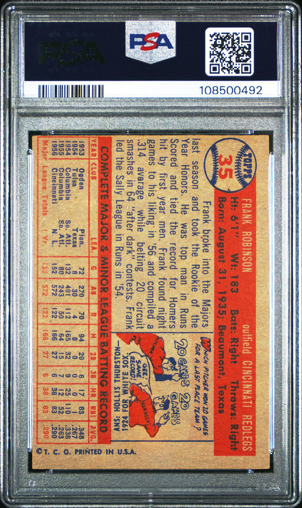 1957 Topps #35 Frank Robinson Rookie Card PSA 4 VG-EX, Very Good to Excellent 4. (Image) (Image2)