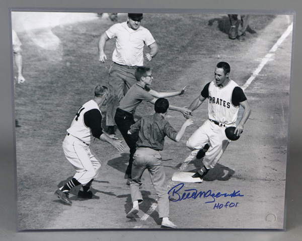 Bill Mazeroski Signed 16x20 Black & White Photo W/ JSA Certificate, "HOF 01" inscription; authenticated by JSA. Shipping