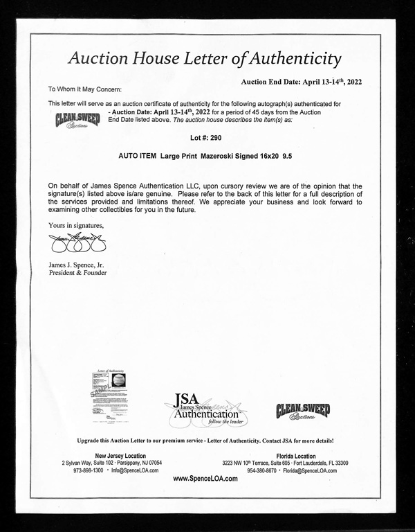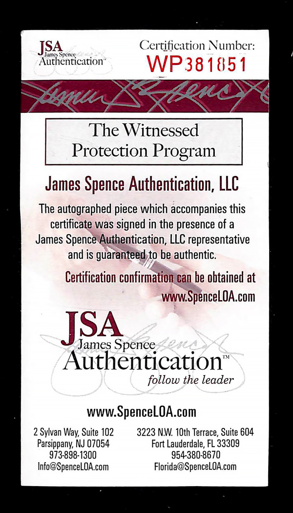 memorabilia for any collector; comes with COA. This item has been previewed by our expert team and we believe this item is genuine and will receive a certificate stating the same. Please advise at the time of bidding if you wish for this lot to be