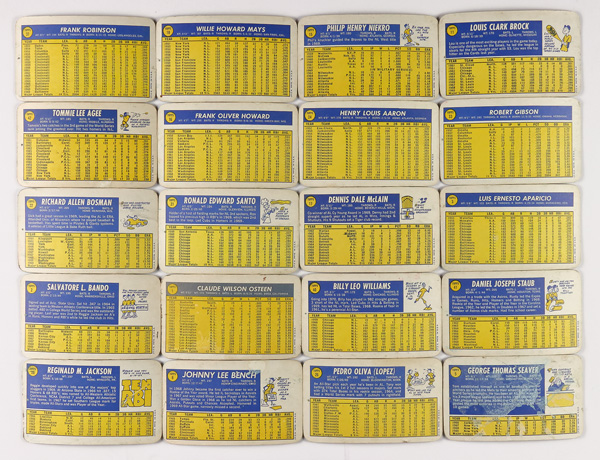 Willie Mays, Warren Spahn, Rocky Colavito, Duke Snider, Stan Musial, Ted Williams, Nellie Fox, Babe Ruth, Roger Maris, Luis Aparicio, Mickey Mantle, Don Drysdale, Harmon Killebrew, Ernie Banks, Yogi Berra, & Bat Boy/Little Leaguer (18 items), nice