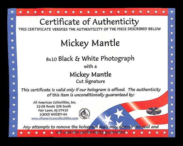 Mickey Mantle Cut Signature W/ a 8x10 Photograph. This item has been previewed by our expert team and we believe this item