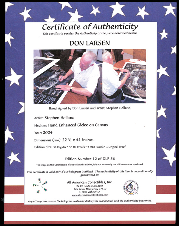 Don Larsen Signed Limited Edition Giclee On Canvas By Stephen Holland, limited edition 12 of 56; amazing piece for any