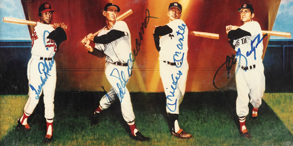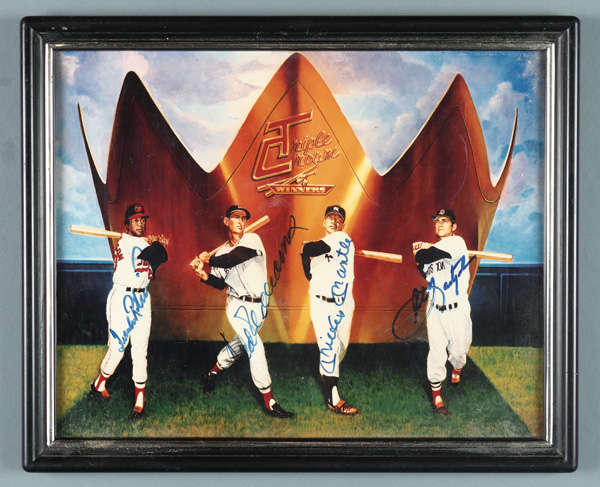 Triple Crown Lithograph Autographed by Mickey Mantle, Ted Williams, Frank Robinson, & Carl Yastrzemski, litho is 8x10; nice