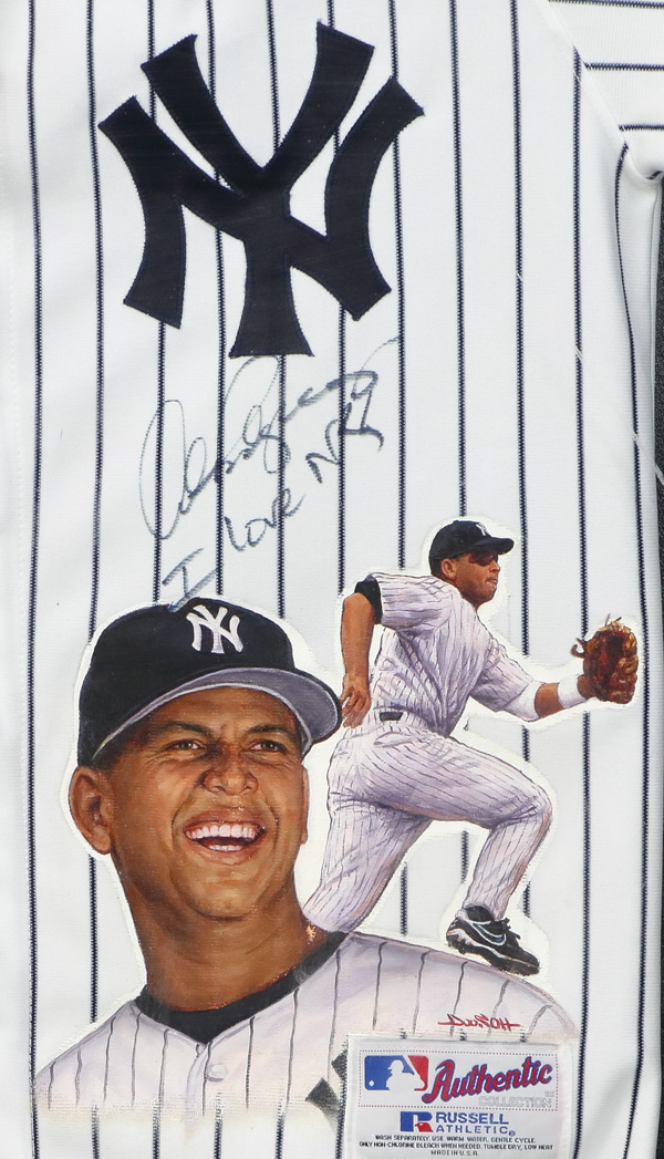 Alex Rodriguez New York Yankees Autographed Inscribed "I LOVE NY" Russell Authentic Painted Jersey, a shadowbox type framed