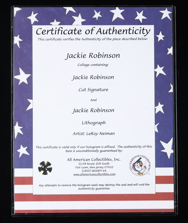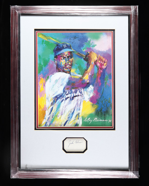 Jackie Robinson Cut Signature & Lithograph Framed, the artist for the lithograph is Leroy Nieman; amazing piece of