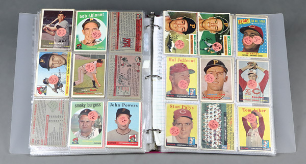 Binder Full of Vintage Baseball Cards, 1950s-1970s, some pages sorted by team; cards in Poor-Fair condition for the most