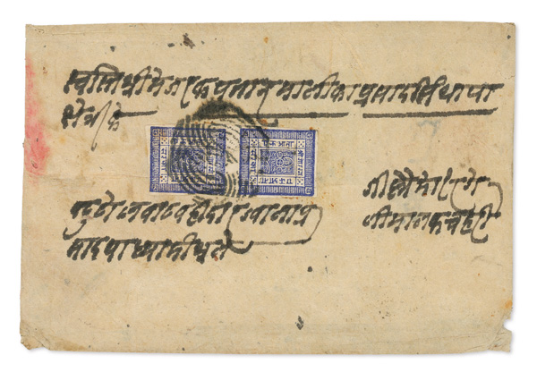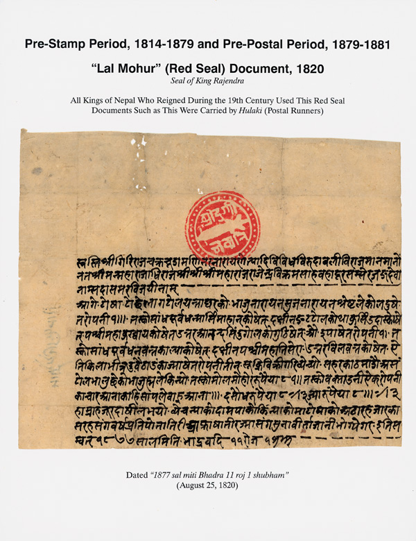 3002 cover 1820.0825 image1820 (Aug. 25), Royal Document, "Lal Mohur" circular seal in red of King Rajendra, dated "Bhadra 11 roj 1 shubha," reduced and a few minor peripheral faults, Very Fine appearance.