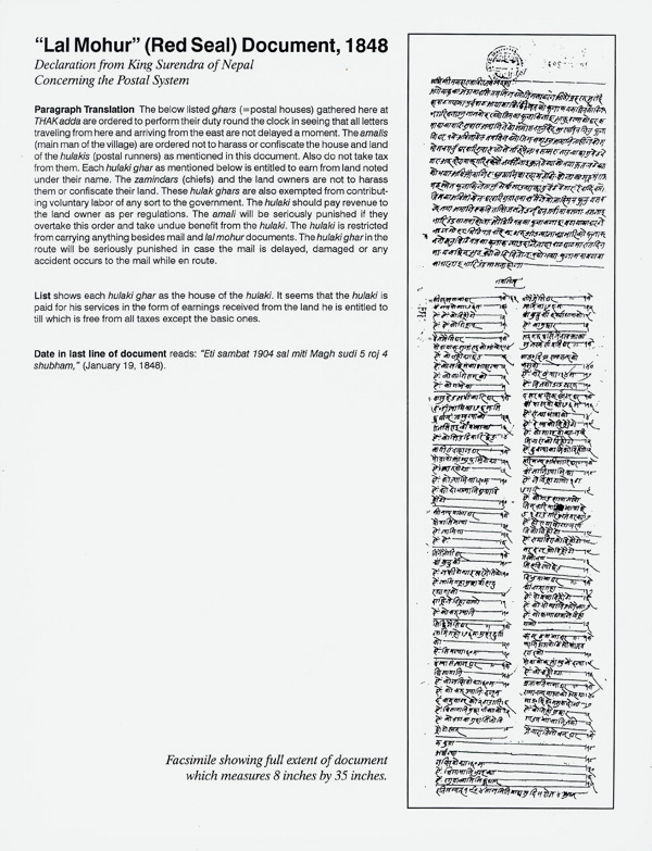 The 19th century Kings of Nepal used this type of seal on documents conveyed by postal runners (Hulaki).