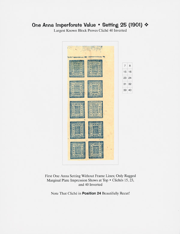 The largest recorded block of this rare Setting proving that cliché 40 is inverted.