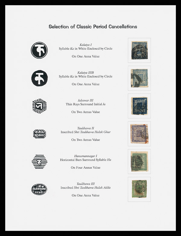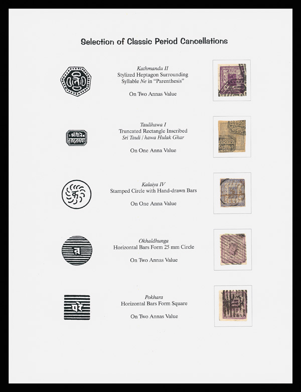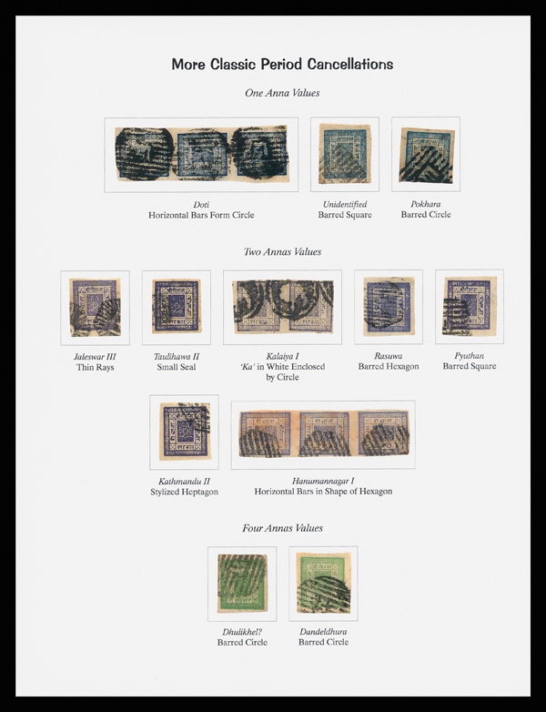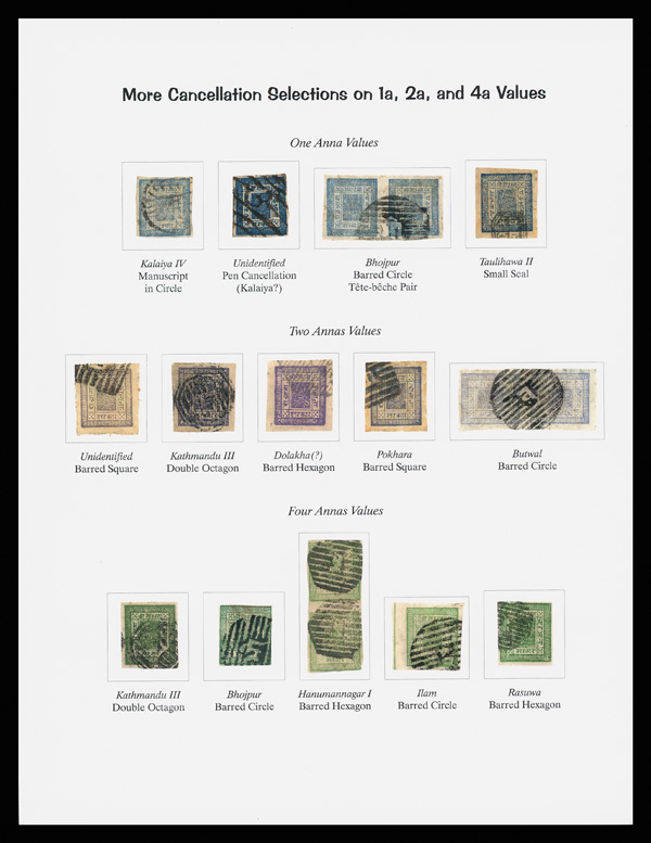 3039 cover   imageExhibition Collection of Cancels on Crown and Khukris Issue, 1895-98, outstanding group of 43 items, arranged by types and values, with ten multiples, including 2a violet strips of three (3), two canceled by Jaleswar and Jhapa barred handstamps; faults, Good to Very Fine strikes, fully imaged online. (Image) (Image2) (Image3) (Image4) (Image5) (Image6) (All Images)