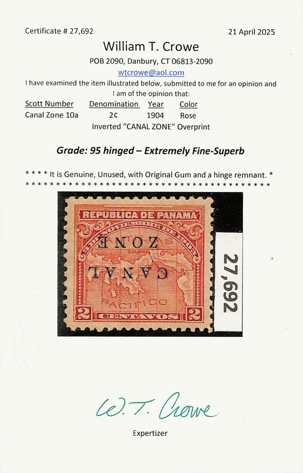 Get Market Data for [United States Possessions (Canal Zone) 10a] Visual Pricing Guide Sample Census