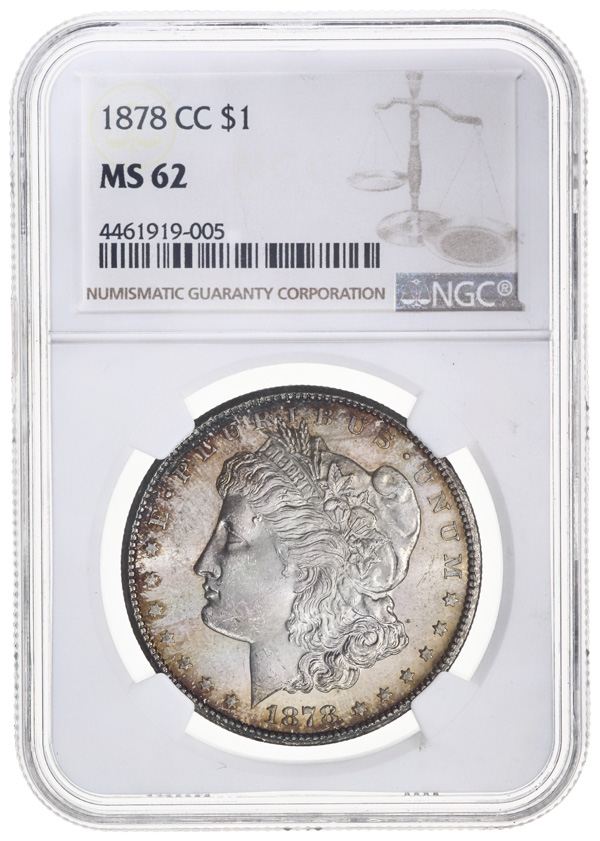 1878-CC, $1 Morgan Silver Dollar, NGC MS62, NGC graded Mint State 62. (Image) (Image2)