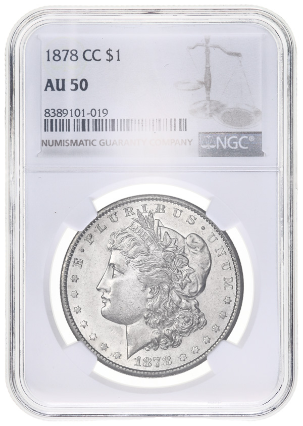1878-CC $1 Morgan Silver Dollar NGC AU50, NGC graded About Uncirculated 50. (Image) (Image2)