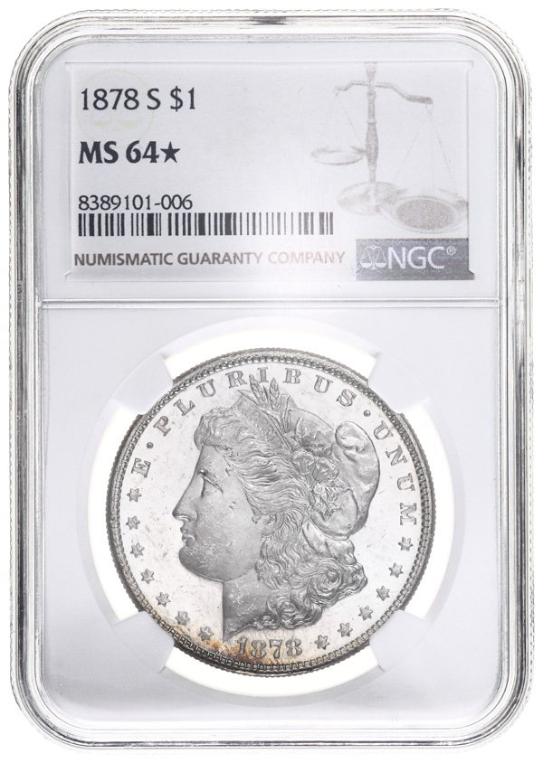 1878-S $1 Morgan Silver Dollar NGC MS64*, NGC graded Mint State 64. Star. (Image) (Image2)