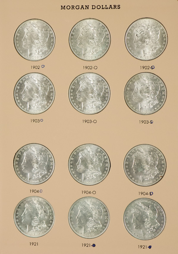 1881-O, 1881-S, 1882-S, 1884-O, 1885, 1885-O, 1886, 1887, 1887-S, 1888, 1891-O, 1893, 1895-O (XF-AU but very attractive), 1897, 1897-S, 1898, 1898-O,1899, 1899-O, 1900-O,1901-O. 1902-O, 1903-O, 1904-O, 1921, and 1921-D; Included in the collection are