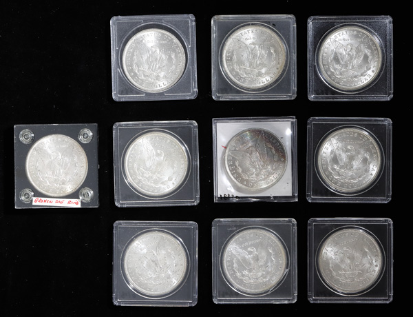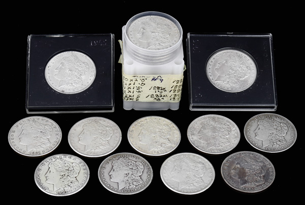 highlighted by an 1879-S in Choice BU condition or better; 1892-CC in Good to VG; a group of 7, 1880-S in Unc to CU; 1888-S, almost VG; 1889-S in AU to Unc; 1893 in Choice Fine to VF; and many others deserving of a careful evaluation (97). Shipping
