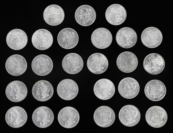 1884-S, 1885, 1885-S, 1885-O (2), 1886, 1886-S, 1897-O, 1897-S, 1896-O (4), 1899-S, 1890-O, 1899-S, 1899-O, 1921 (3), 1921-D, 1921-S (4); in G-XF condition, some potentially AU; please inspect, a very nice group of coins. (Image) (Image2)