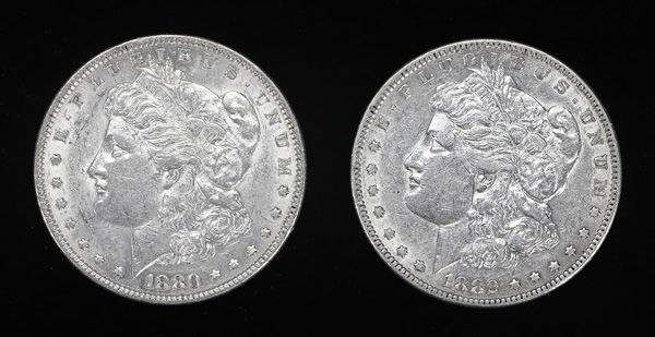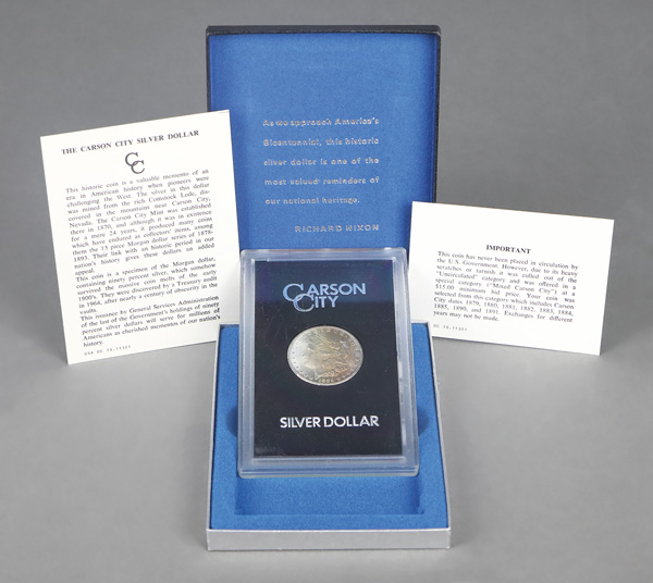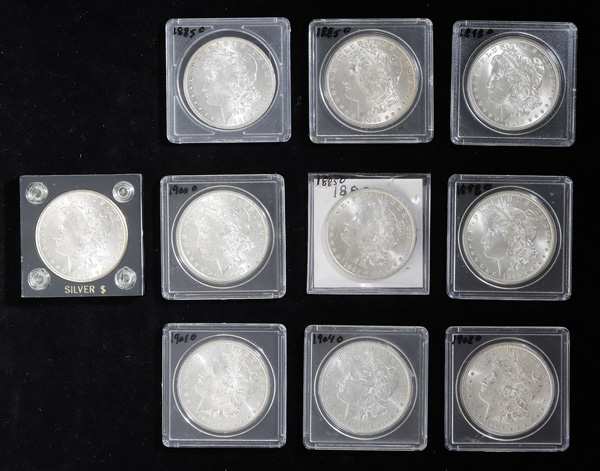 1878 through 1885, 1889 to 1893 (13 "CC" dollars), condition varies between Good to Choice Good to Uncirculated condition with the 1878-CC in Uncirculated condition; high grade Uncirculated to CU condition or better coins includes 1879-S, 1880-S,