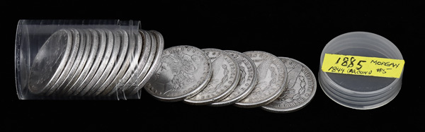 Group of (22) Morgan Silver Dollars, 1884-1885, includes: 1884 (8), 1885-O, 1885 (13); in G-VF condition, please inspect; a