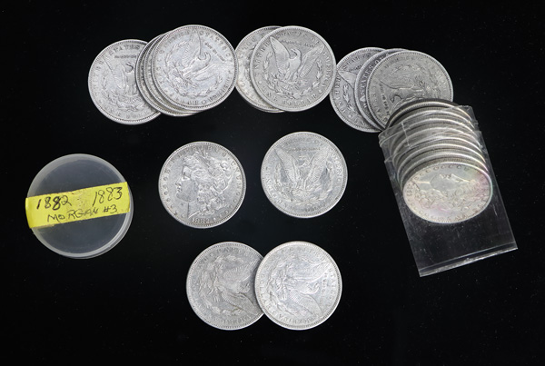 Group of (22) Morgan Silver Dollars, 1882-1883, includes: 1882 (7), 1882-O (4), 1883-O, 1883 (8), 1883-S (2); in G-XF