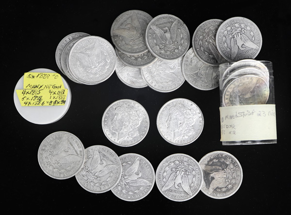 Group of (23) Morgan Silver Dollars, 1885-1889, includes: 1885 (4), 1886 (5), 1886-O (4), 1887-O (4), 1888-O, 1889-O (5); in