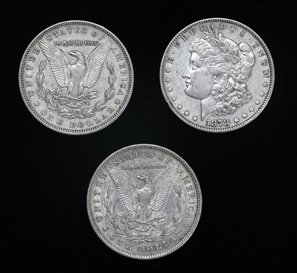 Group of (21) Morgan Silver Dollars, 1878-1880, includes: 1878 (7); 1879 (9), 1880 (5); in F-XF condition, please inspect; a