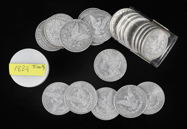 Group of (22) Morgan Silver Dollars, 1884, includes exclusively 1884 (22) dates, all of which do not possess mint marks; in