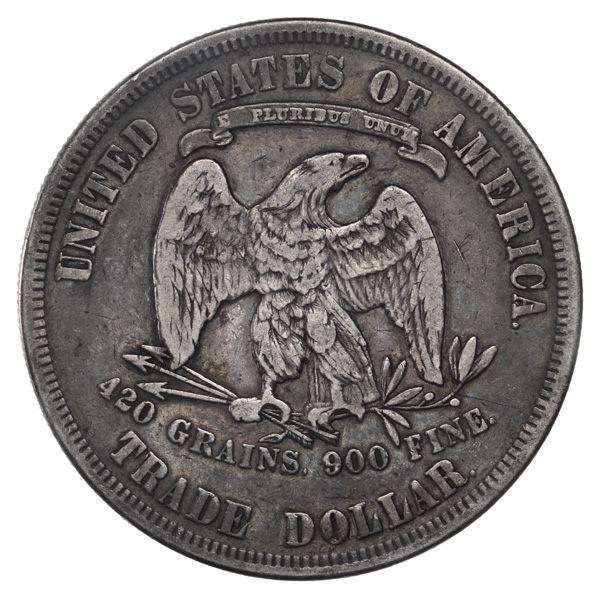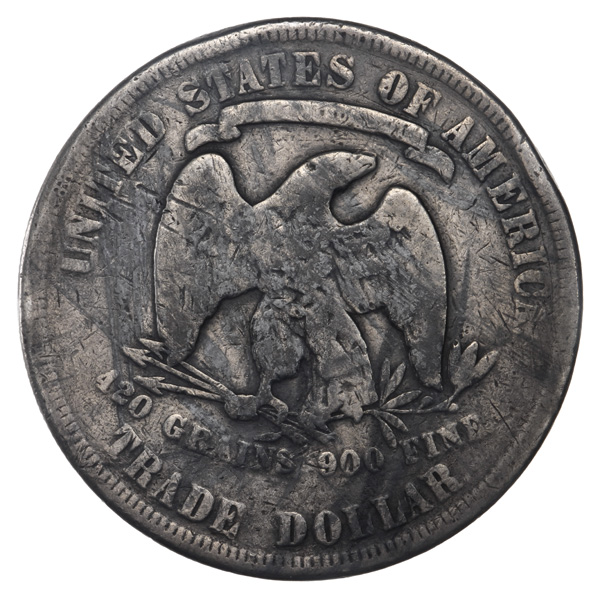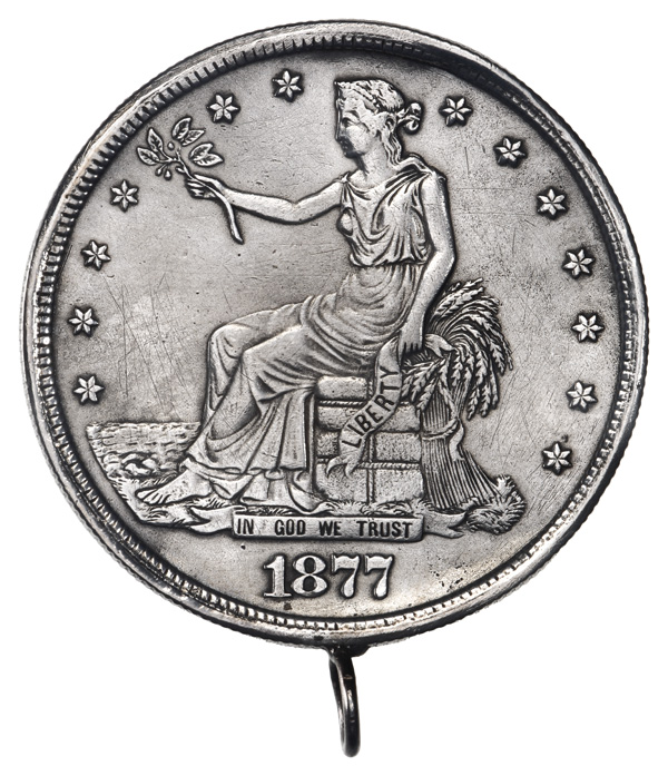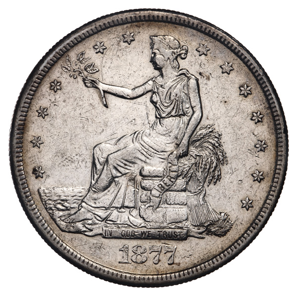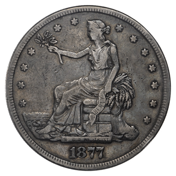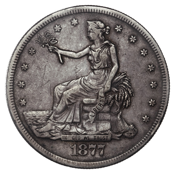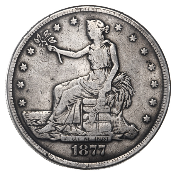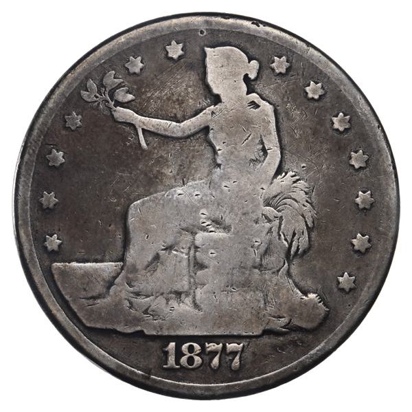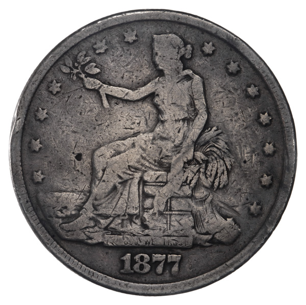 1877 $1 Trade Silver Dollar, in F-VF condition; please inspect. (Image) (Image2)