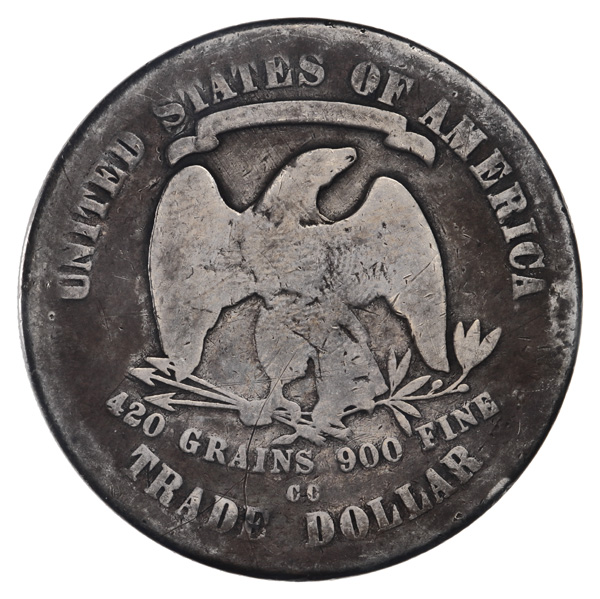 1877-CC $1 Trade Silver Dollar, in VG-G condition; please inspect. (Image) (Image2)