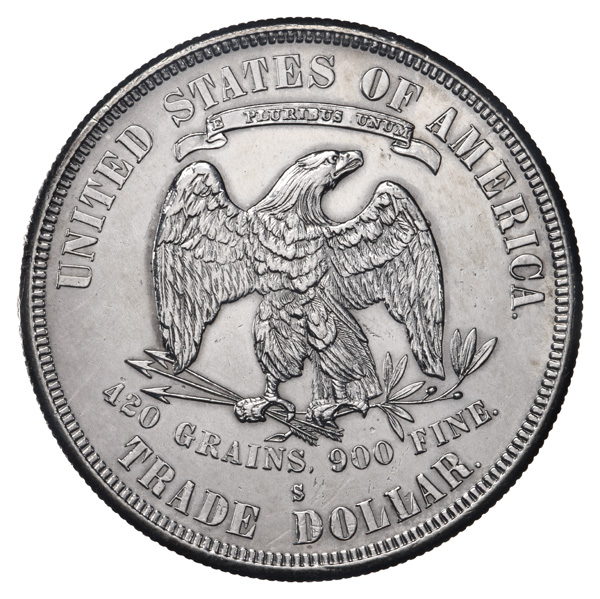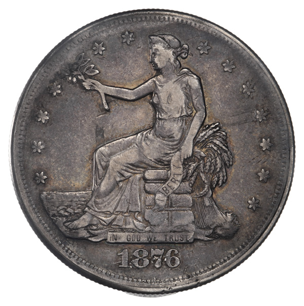 1876-S $1 Trade Silver Dollar, in XF-AU condition; please inspect. (Image) (Image2)