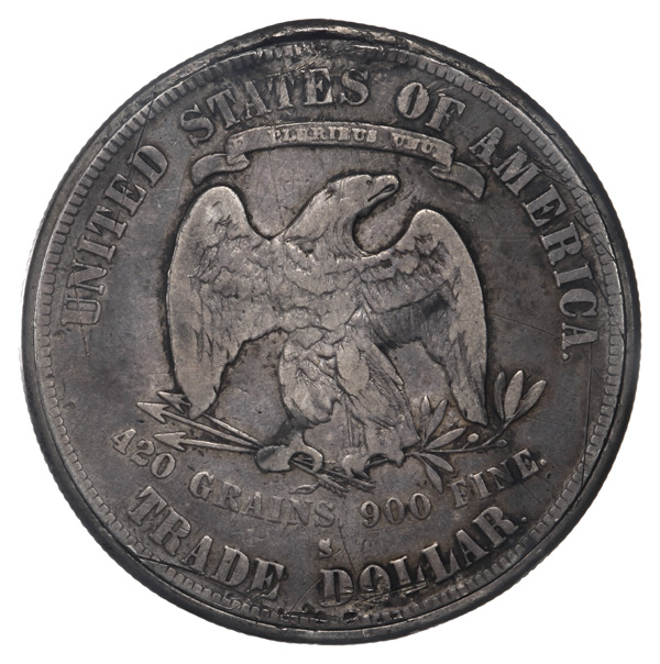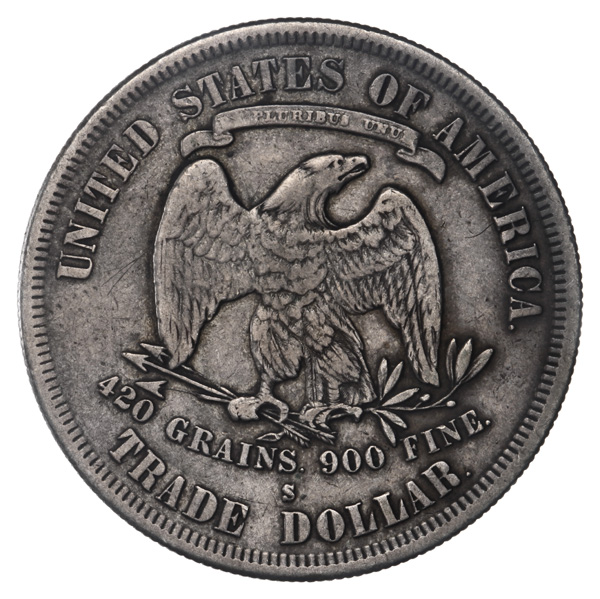 1877-S $1 Trade Silver Dollar, in VF condition; please inspect. (Image) (Image2)