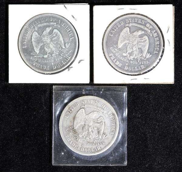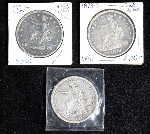 Group of (3) $1 Trade Silver Dollars, 1878-S, condition ranges from VG-Fine, one coin with a scratch on reverse; please
