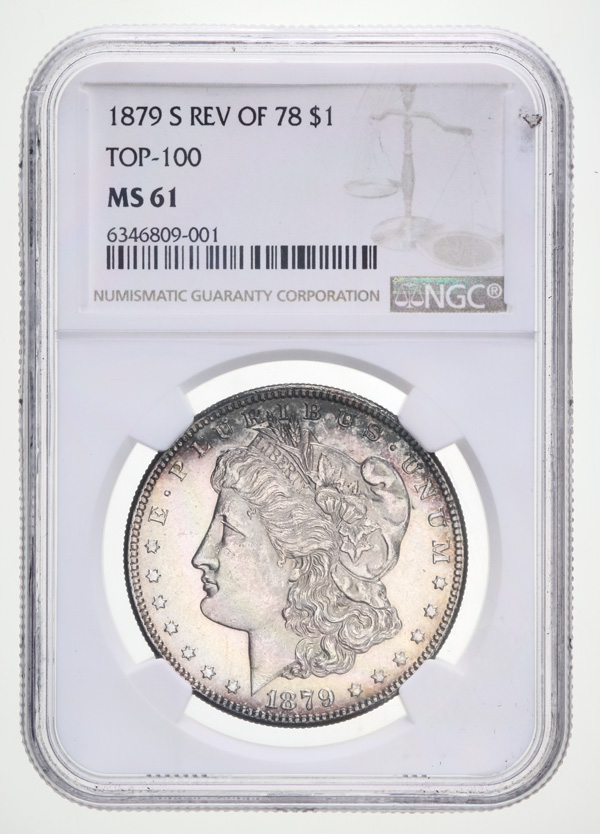 1879-S $1 Reverse Of 1878 Morgan Silver Dollar Top-100 NGC MS61, NGC graded Mint State 61. (Image) (Image2)
