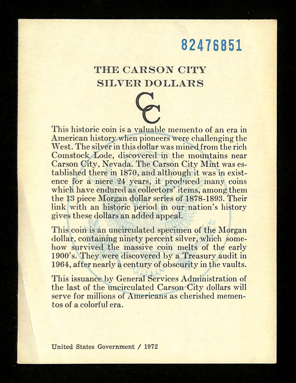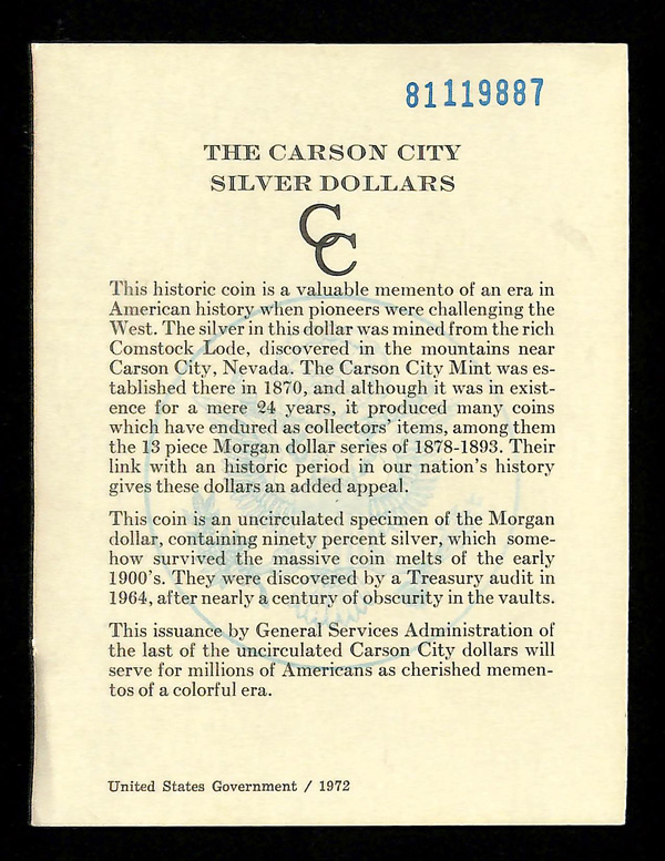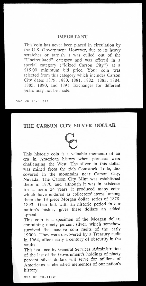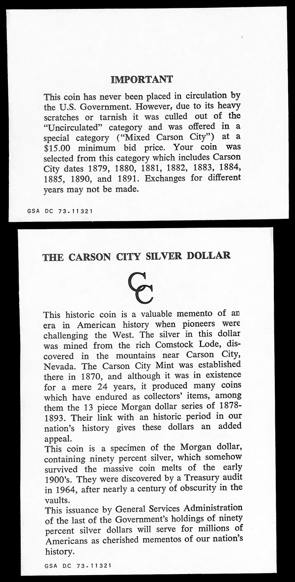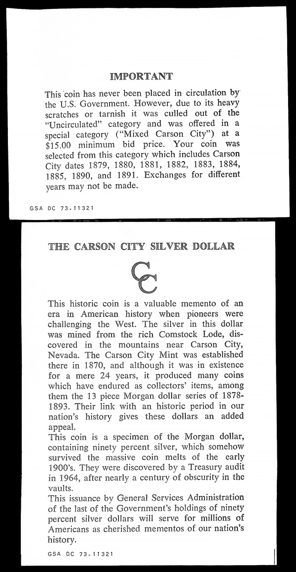 1881-CC, GSA Hoard Carson City $1 Morgan Silver Dollar, includes original GSA box and certificate, Uncirculated. Shipping
