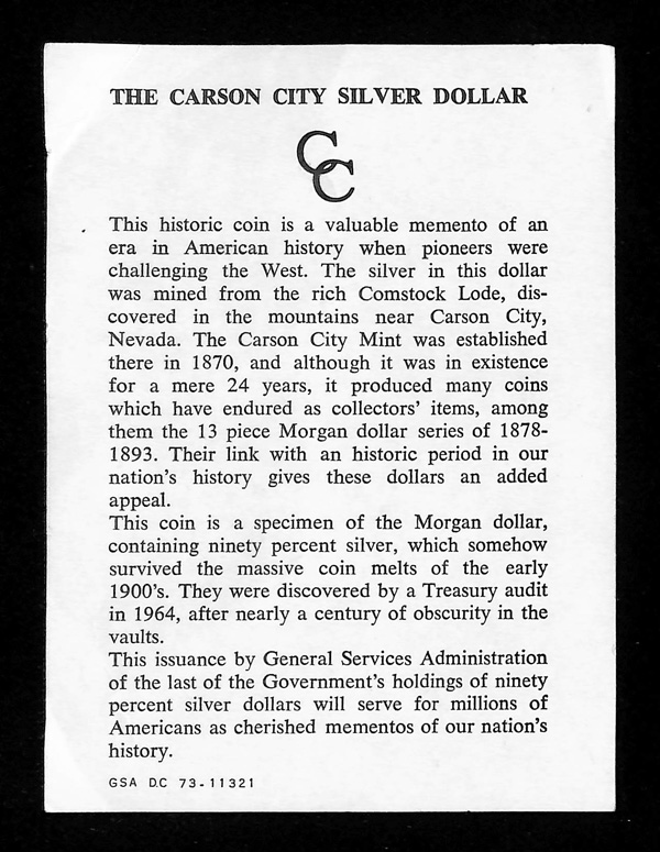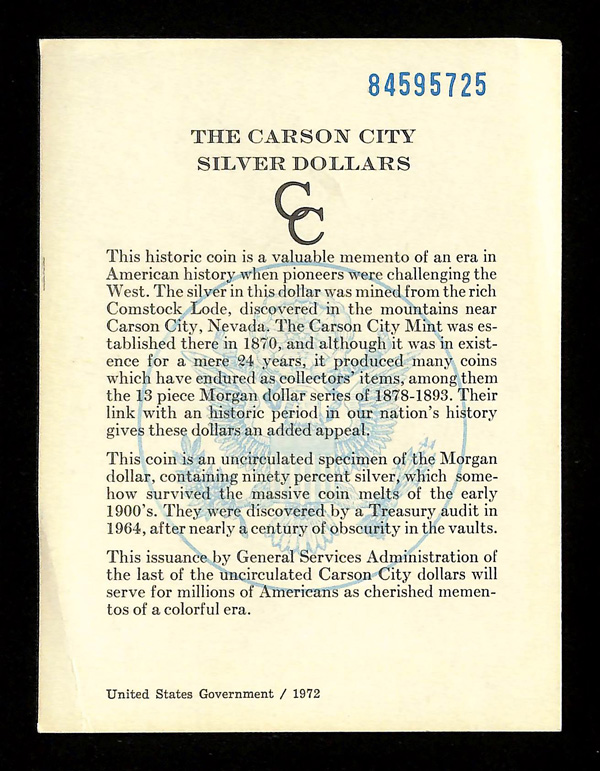 1885-CC, GSA Hoard Carson City $1 Morgan Silver Dollar, includes original GSA box and certificate, Uncirculated. Shipping
