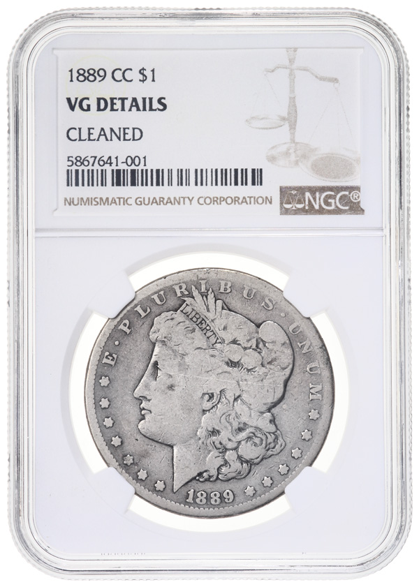 1889-CC, $1 Morgan Silver Dollar, NGC VG Details Cleaned, NGC graded Details of Very Good 10. (Image) (Image2)