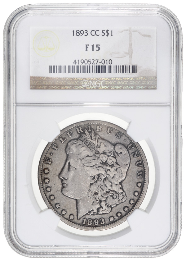 1893-CC, $1 Morgan Silver Dollar, NGC F15, NGC graded Fine 15. (Image) (Image2)