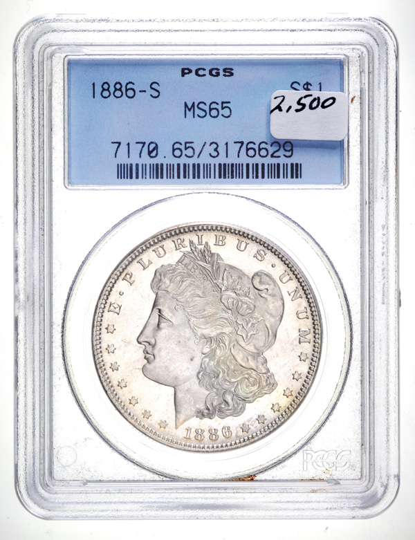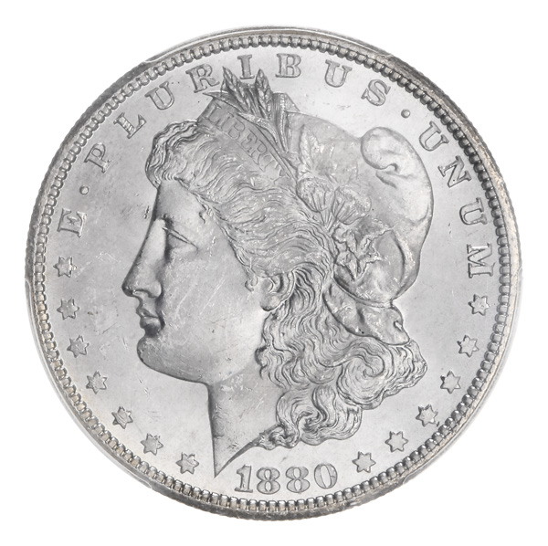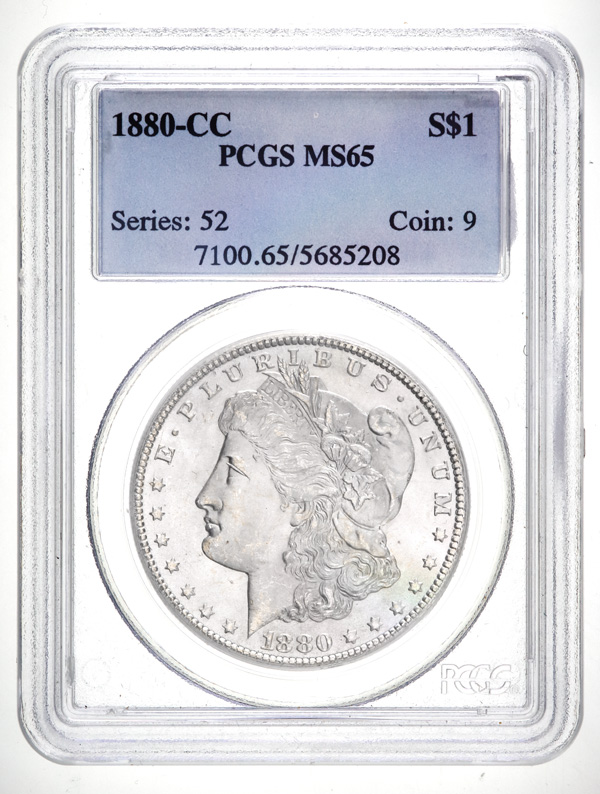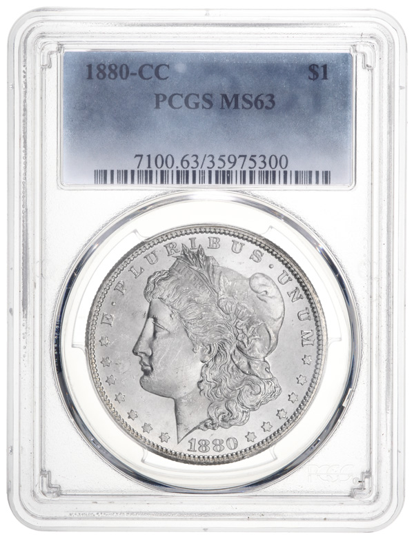1880-CC, $1 Morgan Silver Dollar, MS63, PCGS graded Mint State 63. (Image) (Image2)