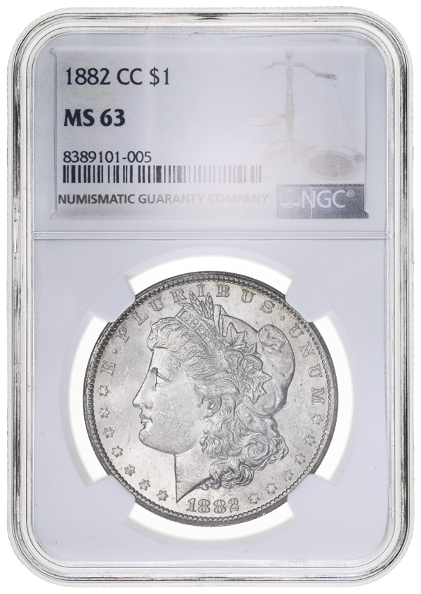1882-CC $1 Morgan Silver Dollar NGC MS63, NGC graded Mint State 63. (Image) (Image2)