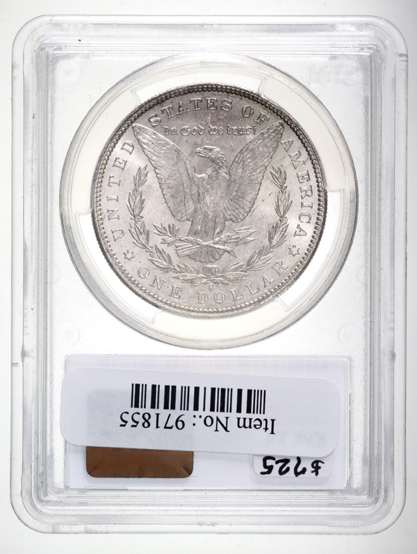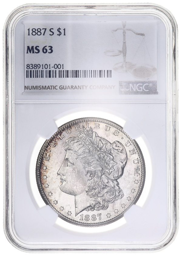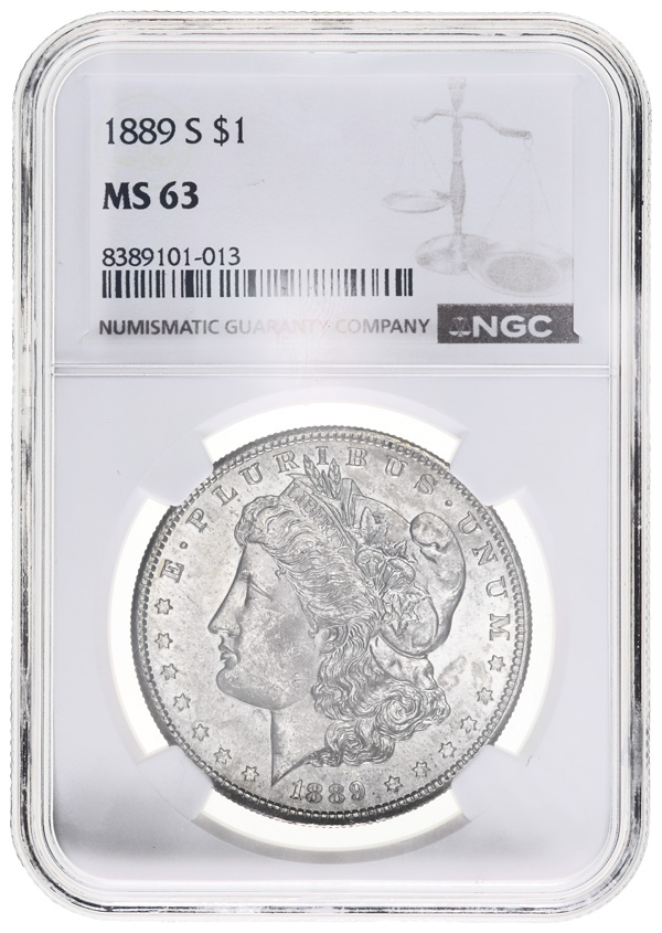 1889-S $1 Morgan Silver Dollar NGC MS63, NGC graded Mint State 63. (Image) (Image2)