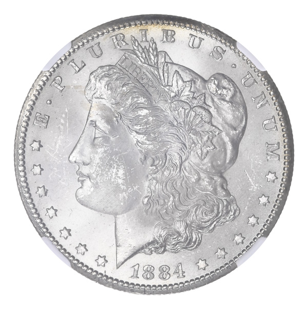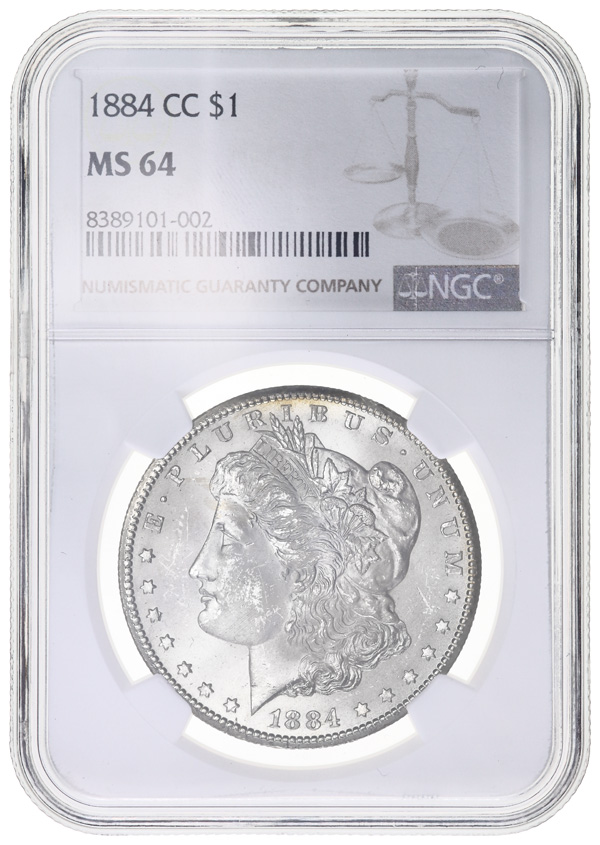 1884-CC $1 Morgan Silver Dollar NGC MS64, NGC graded Mint State 64. (Image) (Image2)