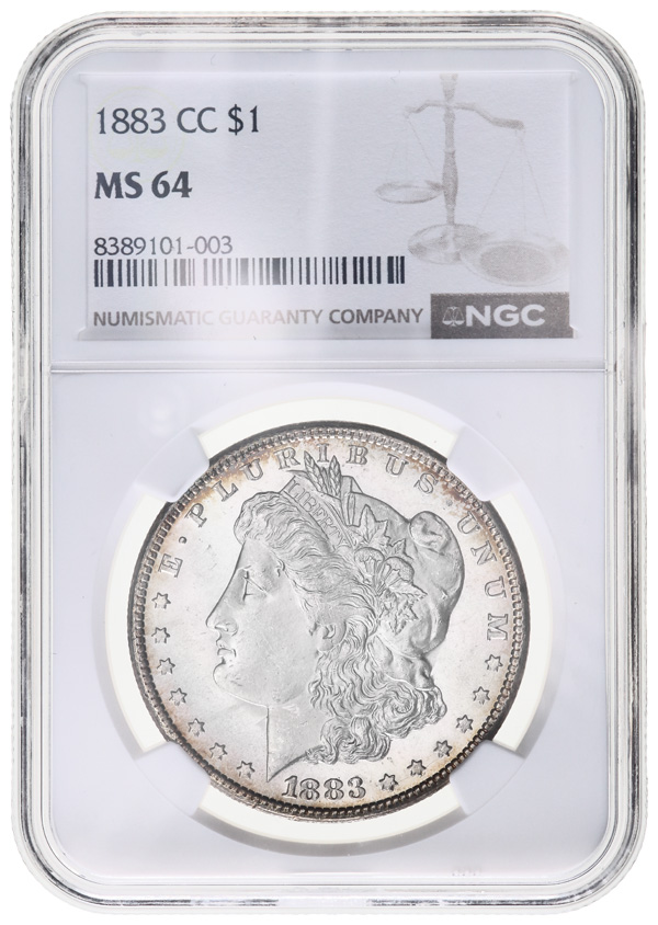 1883-CC $1 Morgan Silver Dollar NGC MS64, NGC graded Mint State 64. (Image) (Image2)