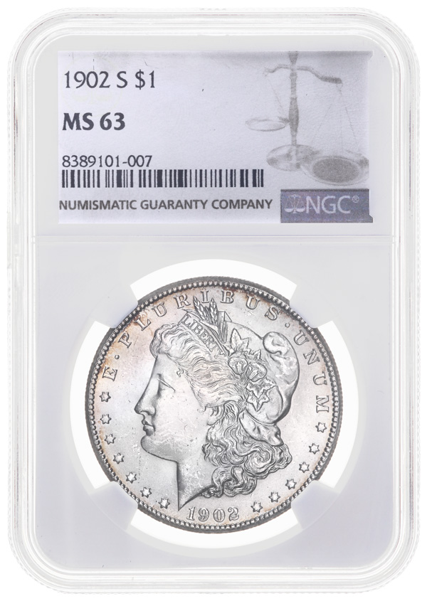 1902-S $1 Morgan Silver Dollar NGC MS63, NGC graded Mint State 63. (Image) (Image2)