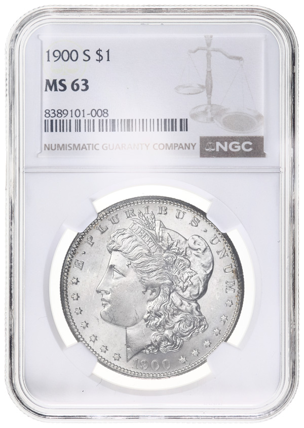 1900-S $1 Morgan Silver Dollar NGC MS63, NGC graded Mint State 63. (Image) (Image2)