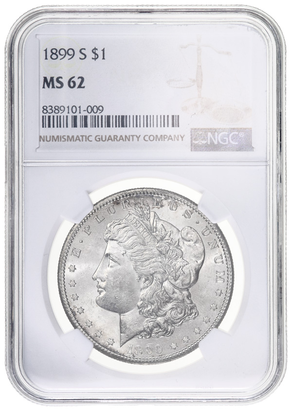 1899-S $1 Morgan Silver Dollar NGC MS62, NGC graded Mint State 62. (Image) (Image2)