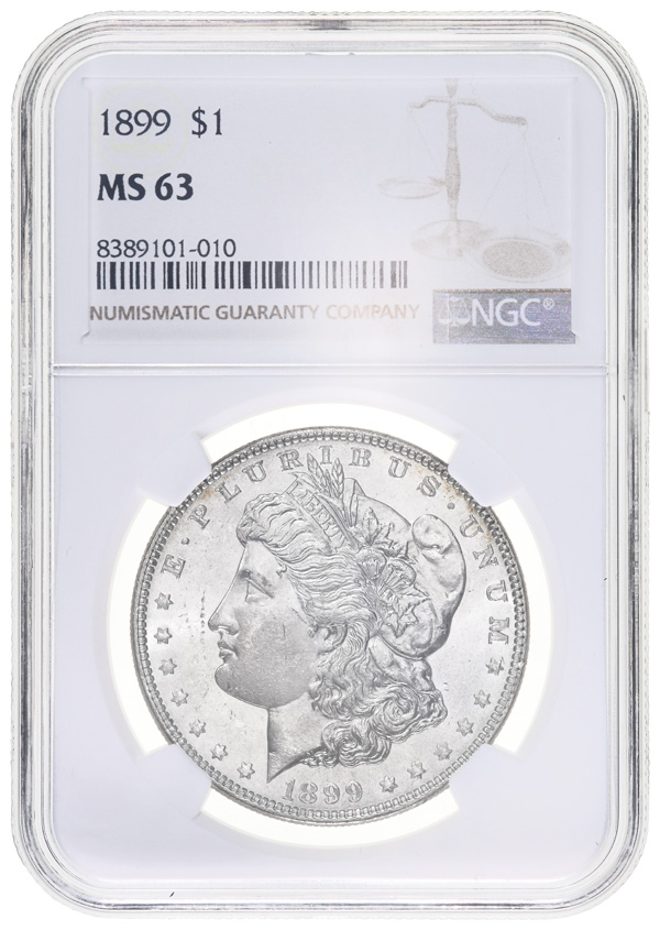1899 $1 Morgan Silver Dollar NGC MS63, NGC graded Mint State 63. (Image) (Image2)